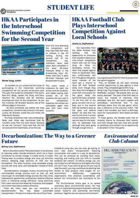 Newsletter Reporters: Jocelyn Tong, Samson Chan, Jessie Lo, Chelsea Yau, Dallas Chan,